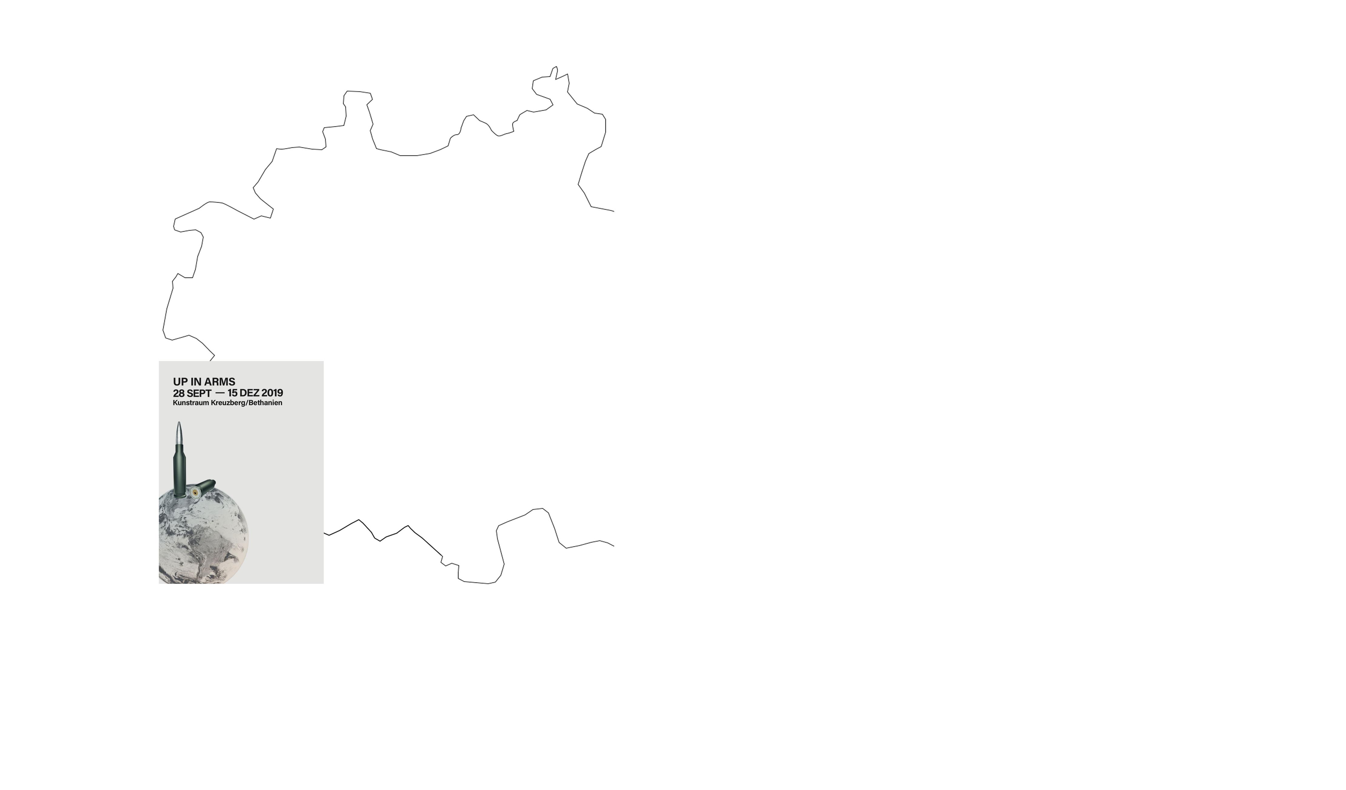 The way art itself can be used as a weapon of protest against the arms trade is also central for the competition »Art in the Underground«, which takes place parallel to the »Up in Arms« exhibition. This year’s edition of »Art in the Underground« maps out and visualizes the presence of the industry in Berlin by placing artworks close to central sites of the arms industry, both historical and contemporary. In order to better link specific works with broader information on those both involved in or working against the weapons trade an online map supports the physical map. The exhibitions’ accompanying public program focuses and explores other aspects of the trade in weapons, taking such forms as panel debates with artists and the collaboration partners, film screenings, and guided tours of Berlin. A series of guided tours developed together with the civil initiative LobbyControl connect with the »Art in the Underground« commissions to give a look into the intersection between lobby-ism and the weapons trade. Further, a series of research articles is published over the course of the exhibition on the »Up in Arms« website.