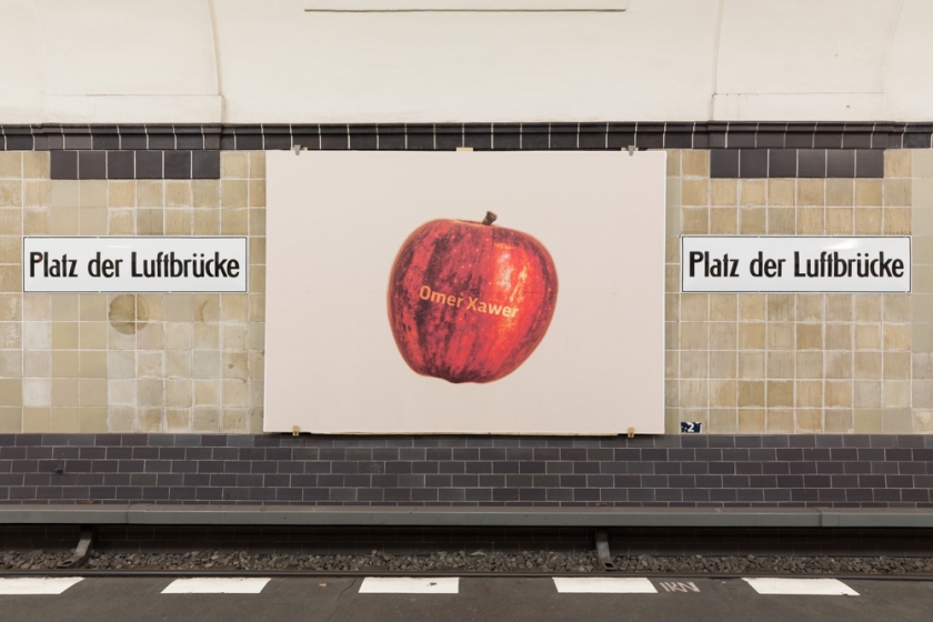 The work is shown in two parts as billboards behind the tracks of the U6 Metro Stations Platz der Luftbrücke und Paradestraße.